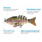 - Features an incredible life-like design and mobile mode in the water. Its 3D eyes help make the lure look more realistic to help it match its realistic pattern. It also features a small stainless steel bell built into the head of the lure that makes a subtle sound for an extra touch of pain. All in all. this helps the fish make impulsive strikes without thinking twice.
